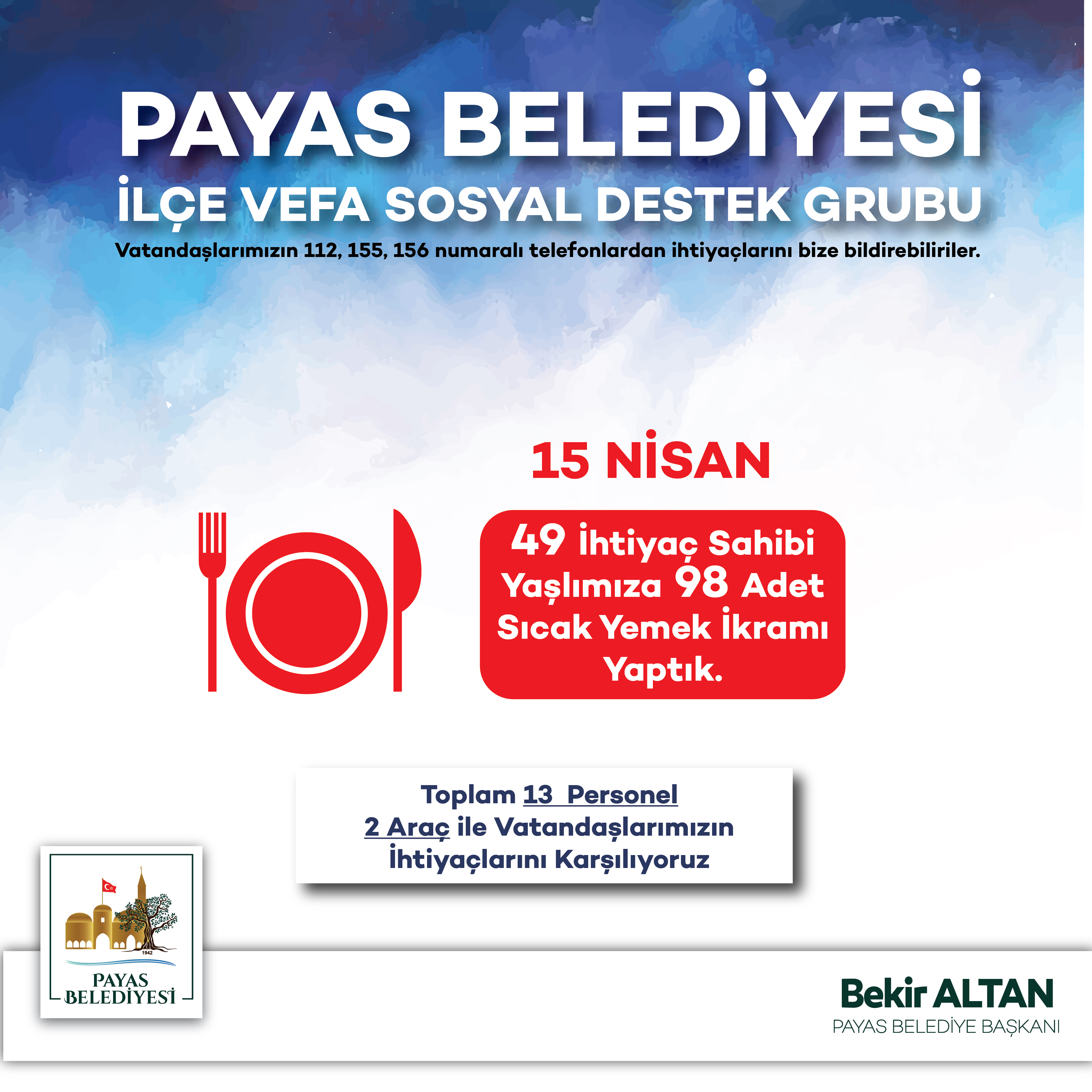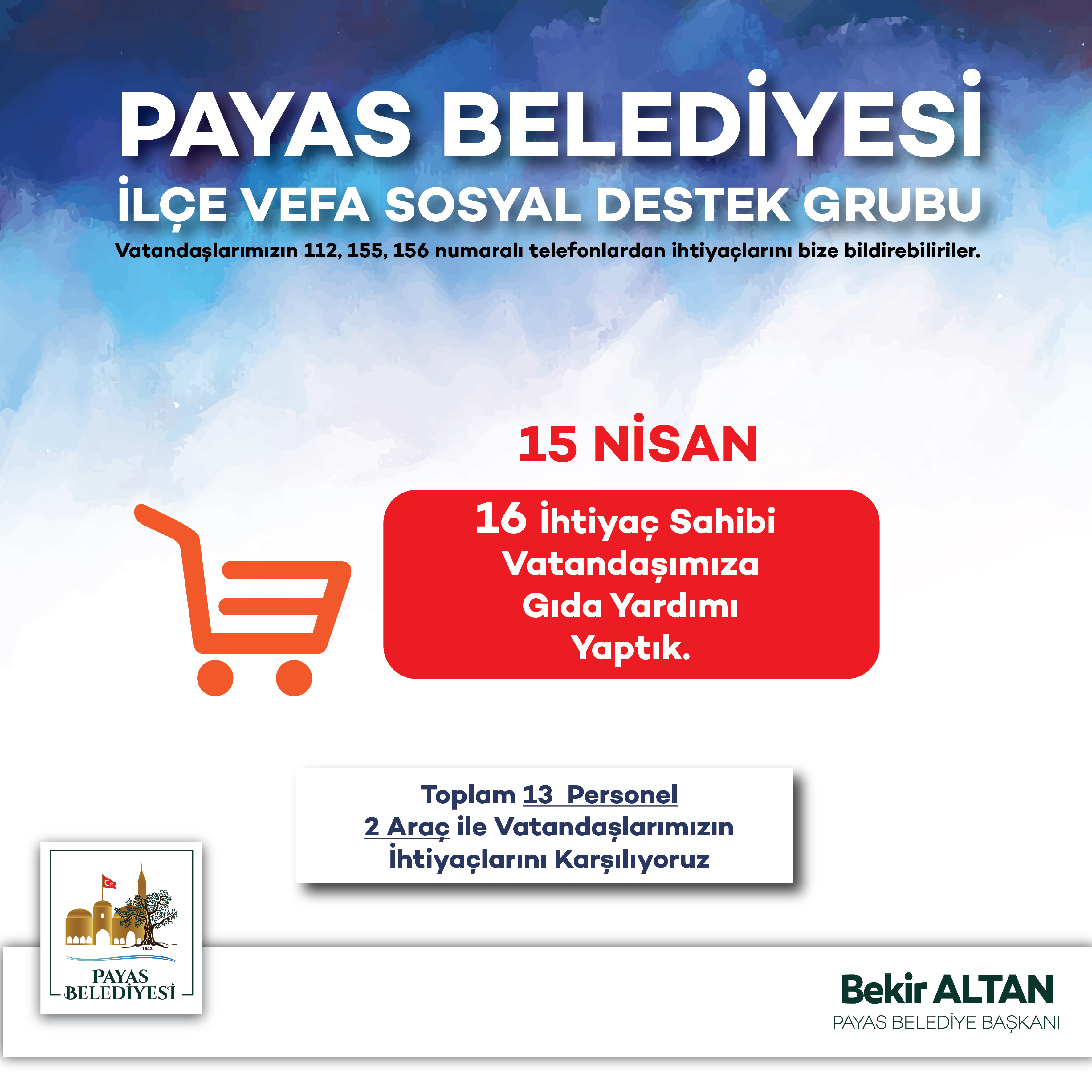 Payas Belediyesi İlçe Vefa Sosyal Destek Grubu Çalışmaları(15.04.2020)