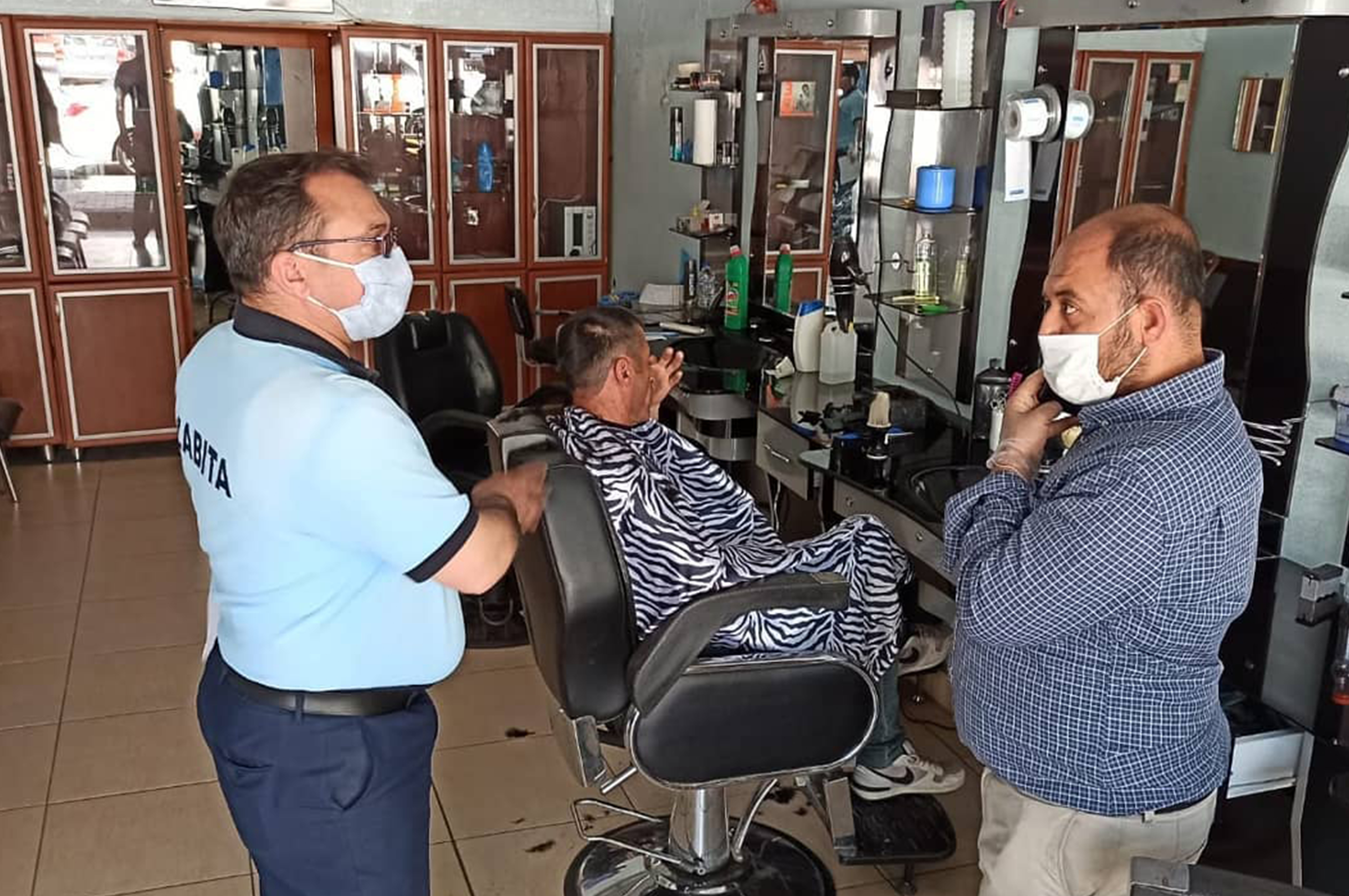 Koronavirüs tedbirleri kapsamında hizmete ara veren kuaför ve berberlerin 11 Mayıs tarihi itibariyle aşamalı normalleşme sürecine girişi ile birlikte Zabıta Müdürlüğüne bağlı ekiplerimiz tarafından İlçemizde bulunan berber ve kuaförlerin hijyen ve sosyal mesafe denetimi gerçekleştirildi.